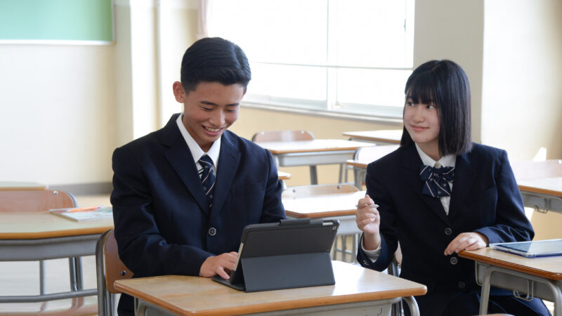 生徒から特色の一つとして挙がるのが「生徒と教師の距離の近さ」です。一方通行ではない双方向にコミュニケーションを取る授業が特徴で、「中学校のころよりも授業が楽しい」と話す生徒も多いです。